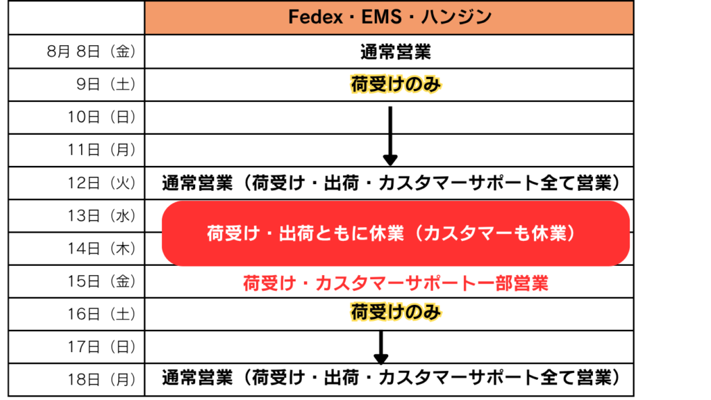 ※ハンジン社を選択されている場合でも、発送する商品の可否によっては、EMSやFedExへ変更して発送する場合がございます。